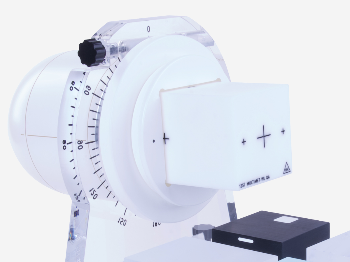 Medição do Alvo MultiMet Fora do Eixo: Trate alvos fora do eixo com maior certeza durante a entrega de SRS de múltiplas metástases, de isocentro único. O MultiMet-WL Cube mede eficientemente a precisão de alvos até 7 cm fora do eixo, com uma precisão de 0,1 mm.
